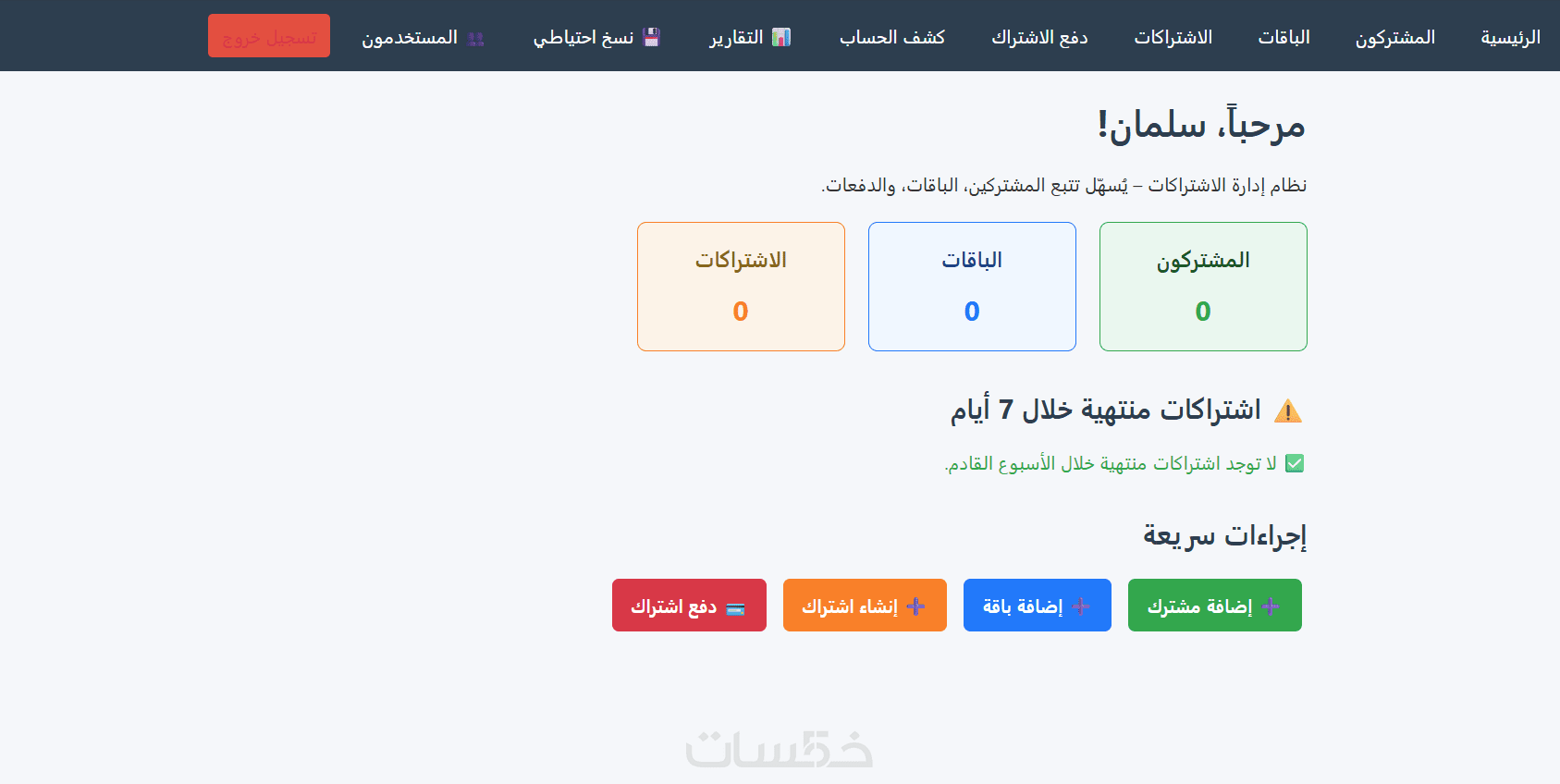 3- اضافة بقاقات الاشتراكات و التعامل معها وتعديلها استخراج تقارير خاصة بها